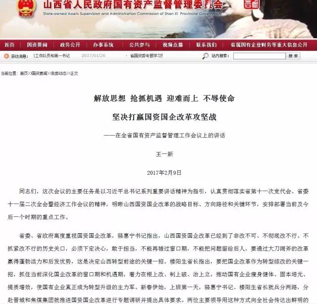 1、山西省政府加强了对国企改革的顶层设计和统筹协调,推动各项政策措施的落实。